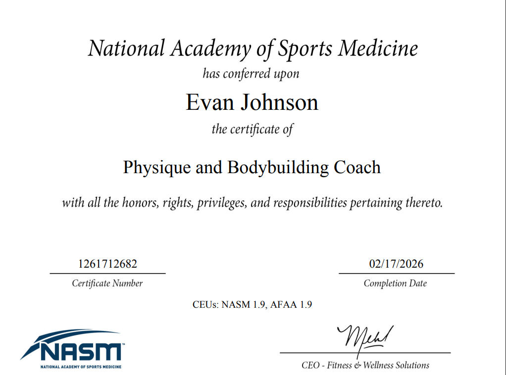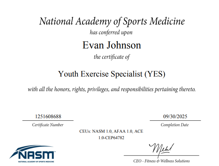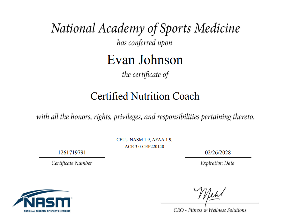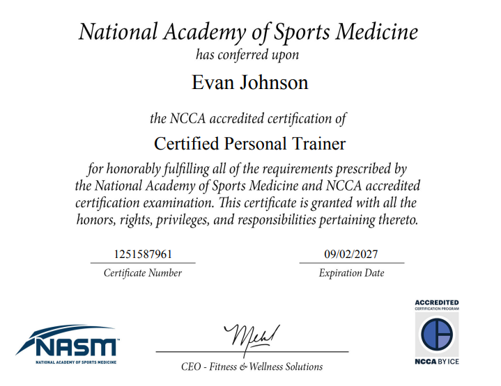 I’ve learned a lot of my methods simply through my own experiences training for many years, however I understand the importance of evidence-based methods and peer-reviewed research. Below are some of the certifications and specializations I have earned throughout my studies.